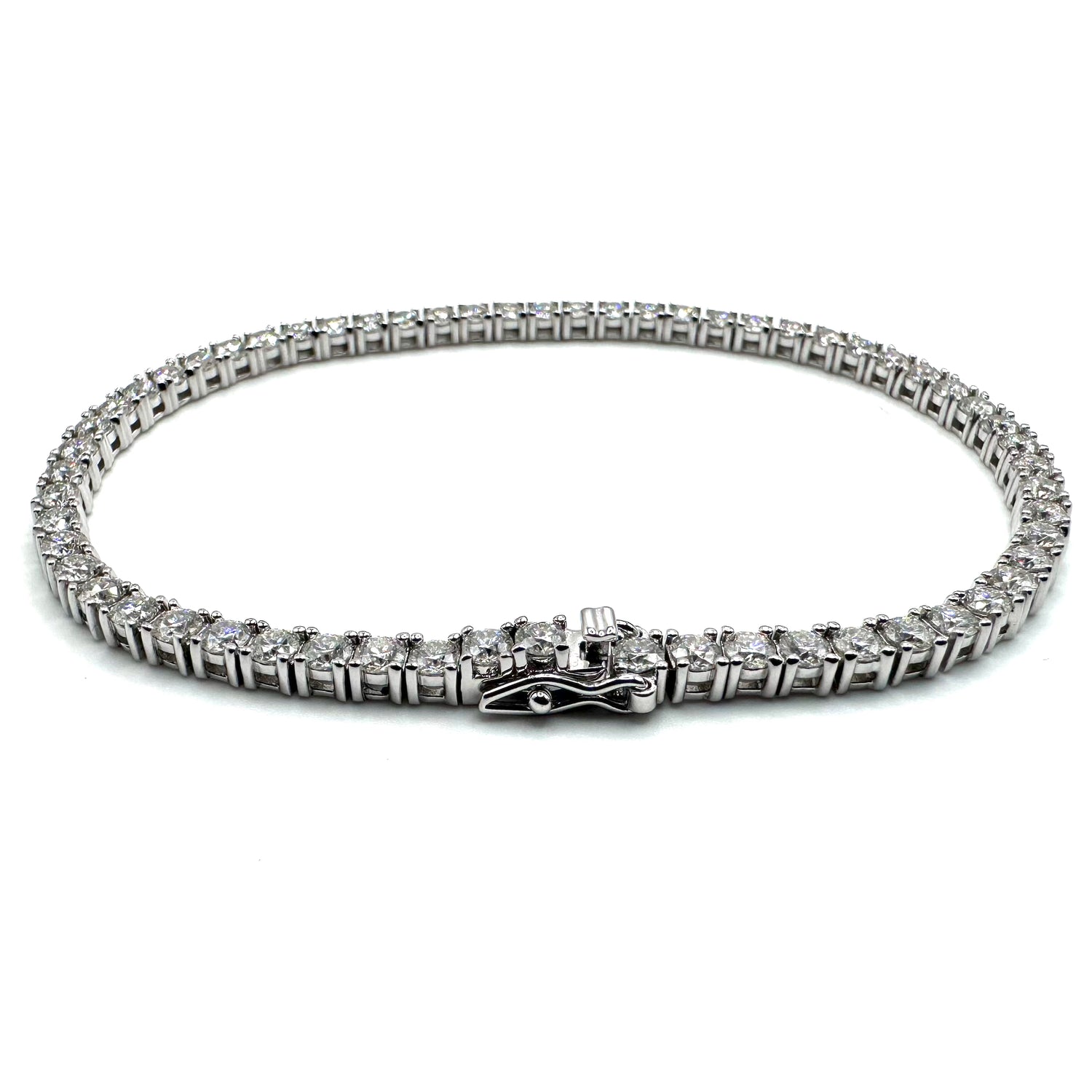 This contemporary Cuban link style bracelet is set with two carats of GRA certified Moissanite. The bracelet’s length is 7.5 inches / 19cm.